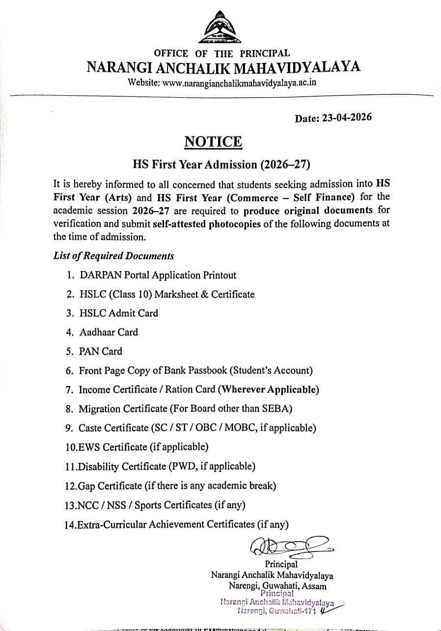 Narangi Anchalik Mahavidyalaya is one of the leading colleges of University of Gauhati higher education in humanities and commerce. We have highly qualified, dedicated and committed faculties who are well known in their respective fields of specialization. They are ever ready to provide guidance, sharpen skills and shape up all round personality of the students.