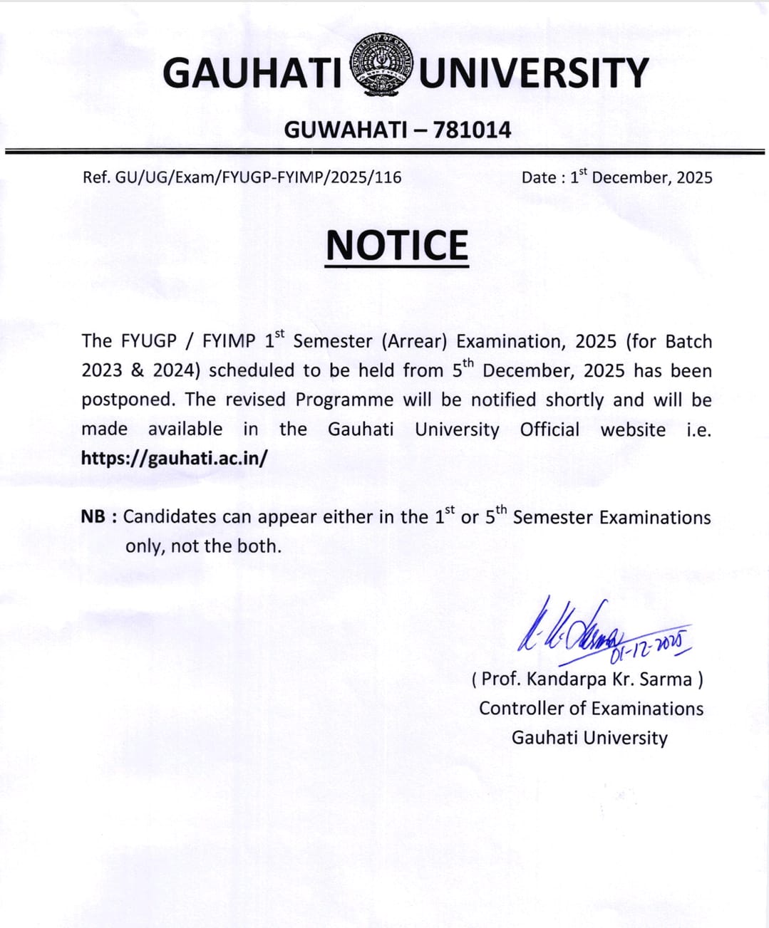 - Notification on Postponement of 1st Semester FYUGP Arrear Examination, 2025 View